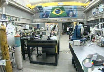 O estudo é feito em parceria com a Força Aérea Americana, que forneceu as fontes de laser. A luz segue por uma tubulação preta, até o túnel, onde ocorre a explosão.