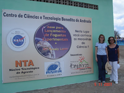 Então neste mesmo ano, entrei em contato com a Drª Rosaly Lopes para ela conhecer de perto nossos trabalhos com os alunos do projeto “NTA Itinerante nas Escolas”, e também para colocar em pratica um local de lançamentos de foguetes experimentais e de balões estratosféricos. Local este que nomeamos de “Base de Lançamento de Foguetes Experimentais Drª Rosaly Lopes” em sua homenagem e que foi inaugurado em 2007 com a presença da Drª Rosaly. (veja os vídeos)