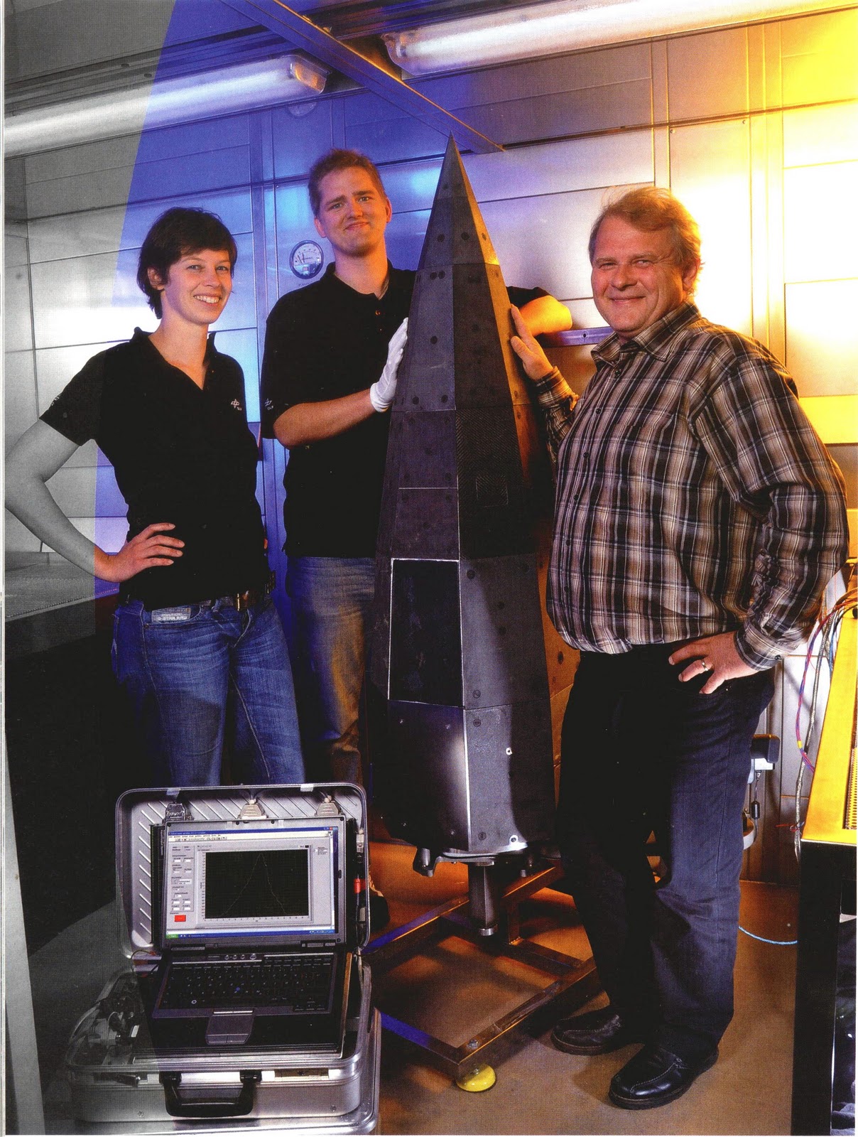 and project manager Hendrik Weihs stand beside their experimental