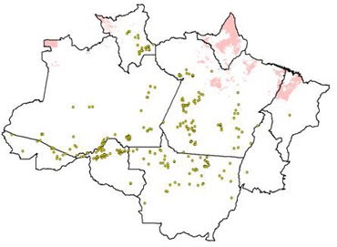 No mapa abaixo os pontos amarelos mostram a localização dos alertas emitidos pelo DETER. Os locais não monitorados devido à cobertura de nuvens são mostrados em rosa. Em setembro de 2011, apenas 5% da Amazônia não foram observados.